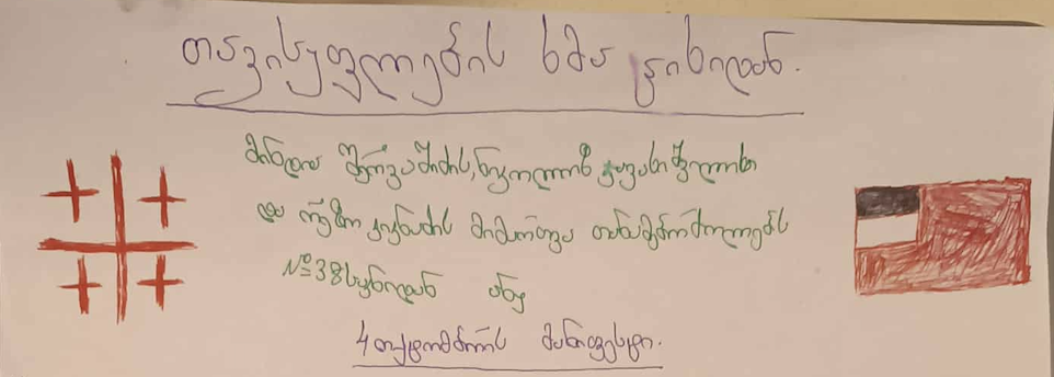 ჩვენი წინაპრები ყოველი ბრძოლის წინ ხელში დროშას აწვდიდნენ ერთმანეთს და ასე მიმართავდნენ: „ეს დროშა ჩვენ გვეკუთვნის, ეს დროშა ჩვენს სამშობლოს ეკუთვნის, დროშა, რომელიც არავის არ უნდა დავუთმოთ, ყველამ ხელში აიღეთ, მერე კი ეს დროშა, რაც შეიძლება მაღლა აღმართეთ, რომ მისი დანახვა ყველამ შეძლოს, აი მაშინ კი ნამდვილად გაიმარჯვებს ქართველი ერი“. 4 ოქტომბერს ყველამ აღმართეთ 5-ჯვრიანი დროშა და ეს იქნება საწინდარი, რომ გავიმარჯვოთ სახელოვნად.