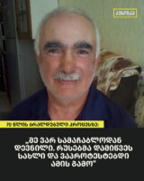 დავით გიუნაშვილი – 69 წლის, დევნილი, ცხოვრობს თბილისში.
