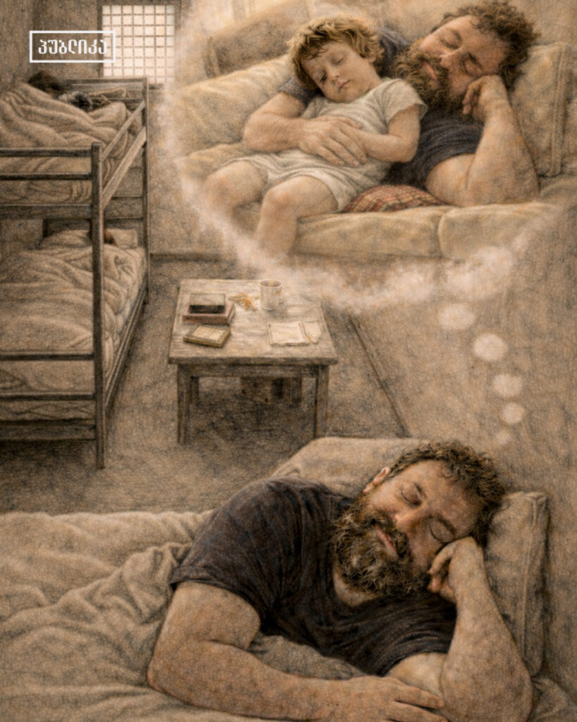 ის სასჯელს ქსნის ციხეში იხდის – მთელი დღის განმავლობაში ერთ ოთახშია. საკანში ოთხნი არიან. სეირნობისთვის აქვს მხოლოდ ერთი საათი.