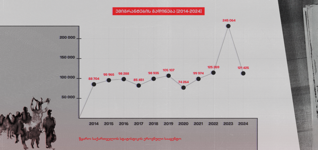 მართალია, საქსტატი არ აწარმოებს სტატისტიკას იმის თაობაზე, თუ რა მიზეზით ტოვებენ საქართველოს მოქალაქეები, თუმცა მიგრაციის საკითხთა სამთავრობო კომისიის მიერ შექმნილი 2021-2030 წლების მიგრაციის სტრატეგიის თანახმად, საქართველოდან ემიგრაციული ნაკადების ზრდაში მნიშვნელოვან როლს თამაშობს სოციალურ-ეკონომიკური ფაქტორები და საზღვარგარეთ განათლების მიღების უკეთესი შესაძლებლობები.