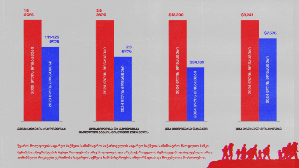 ეროვნული ბანკის მონაცემებით, მხოლოდ 2025 წლის დეკემბერში 337 მილიონ აშშ დოლარზე მეტი იყო, ხოლო სრულად 2025 წლის განმავლობაში ემიგრანტებმა საქართველოში 2.7 მილიარდი დოლარი გადმორიცხეს, 2024 წელს – 3.4 მილიარდი, ხოლო 2023 წელს 4.1 მილიარდი.