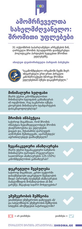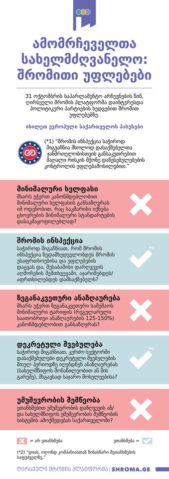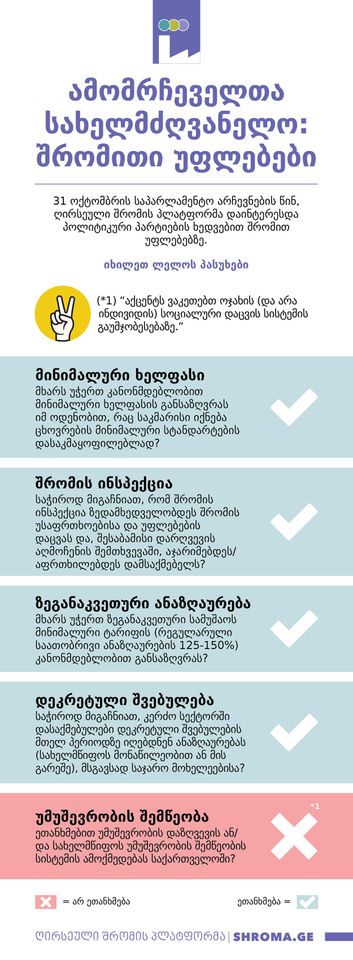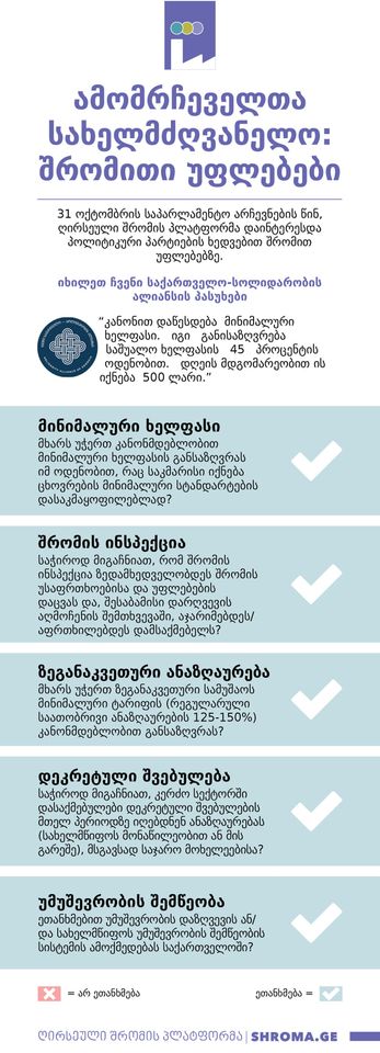აღსანიშნავია, რომ „ლეიბორისტული პარტია“ მინიმალურ ხელფასსაც, შრომის ინსპექციის საზედამხედველო ფუნქციასაც, ზეგანაკვეთური სამუშაოს ანაზღაურებას, კერძო სექტორში დასაქმებულებისთვის ანაზღაურებად დეკრეტულ შვებულებასაც და უმუშევრობის შემწეობასაც ეთანხმება, ისევე როგორც „ჩვენი საქართველო – სოლიდარობის ალიანსი“.